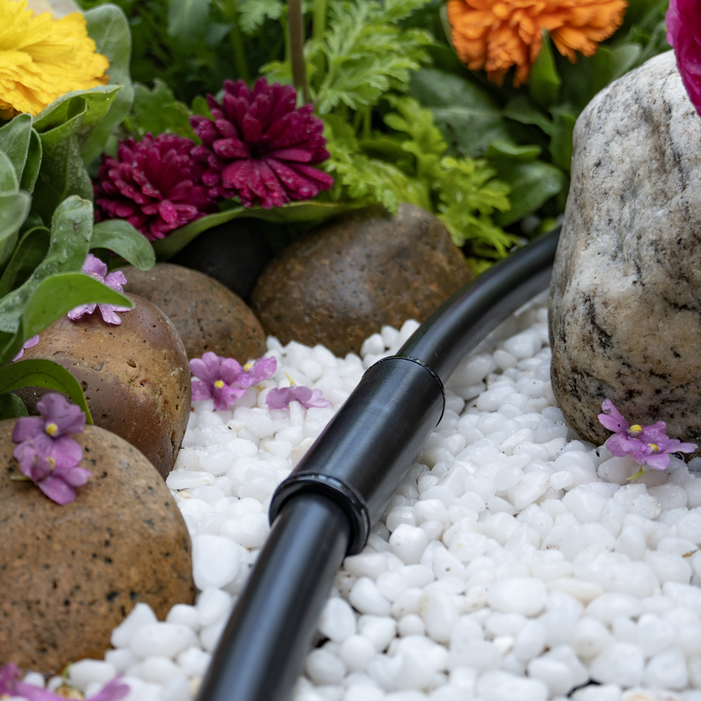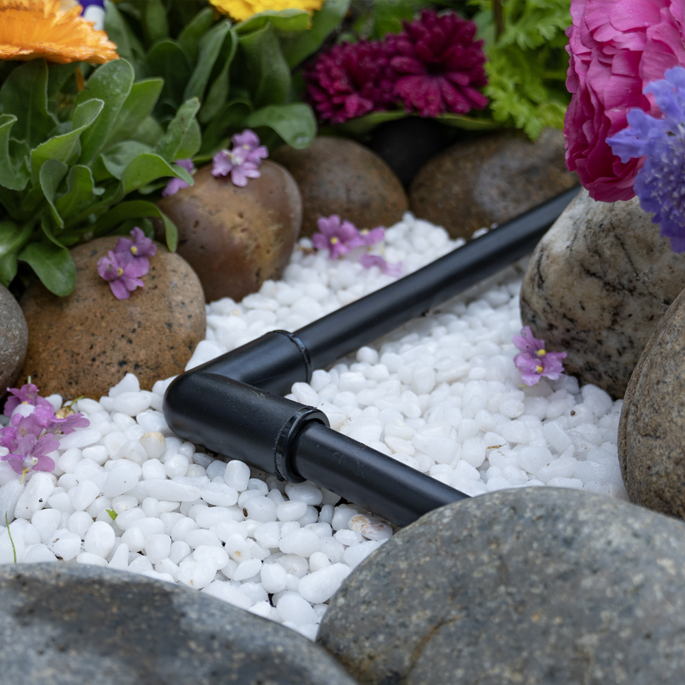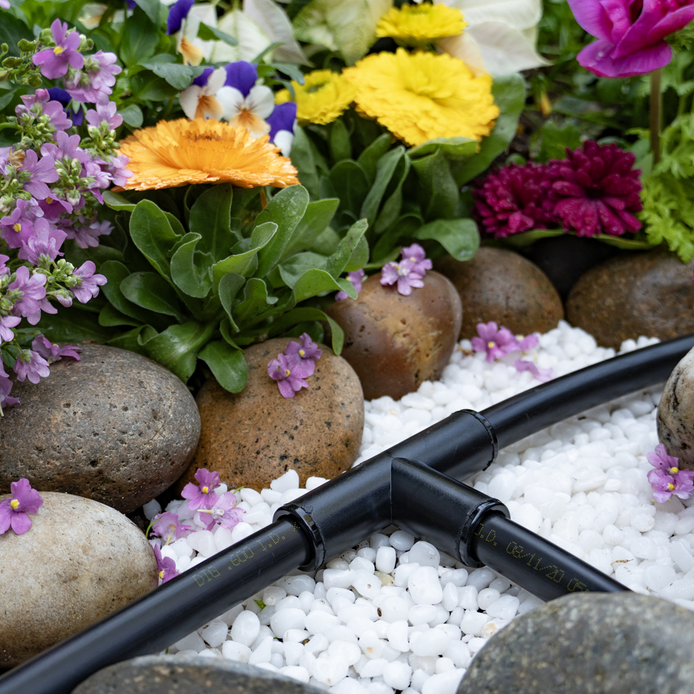 The compression fittings are available in configurations that include couplings, tees, elbows, PVC pipe to drip tubing connectors, ends, swivel adapters and swivel tees to start and complete the installation of any drip irrigation layout. For any drip irrigation installation, we highly recommend installing a 25 PSI pressure regulator at the beginning of the system. The pressure regulator is used to lower the incoming pressure of the water to the system’s suggested operating pressure of 25 PSI, which is within the range of recommended pressures for drip irrigation or micro-sprinkler systems.