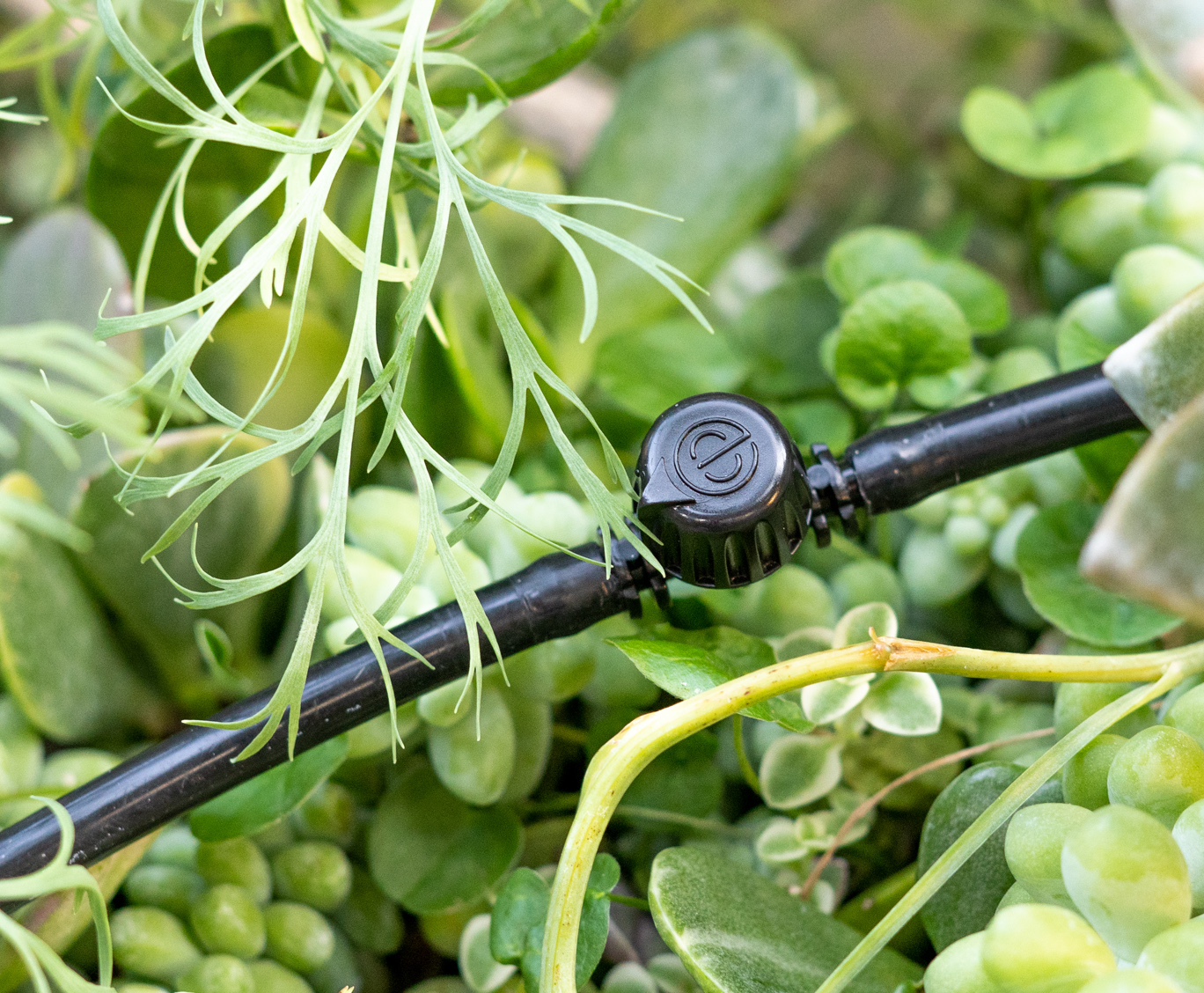 - To the 1/4″ ball valve, connect the micro tubing and lay it out along the pots, baskets or containers in the group.