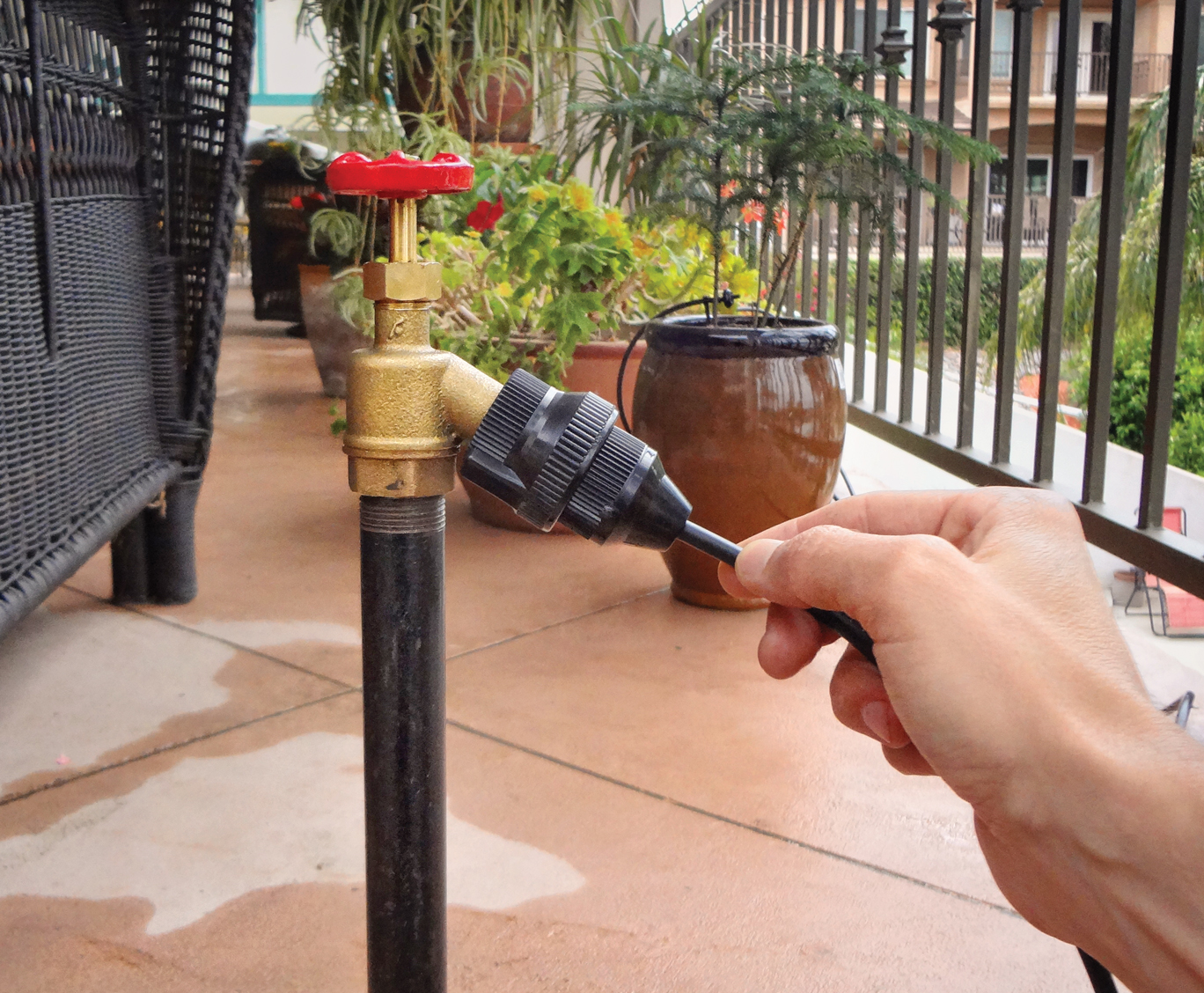 Connect to your water source using a backflow preventer, filter (recommended) and pressure regulator.