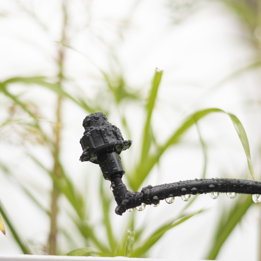- Can be installed on top of 8” to 24” diameter pots and baskets or for overhead misting, cooling and watering