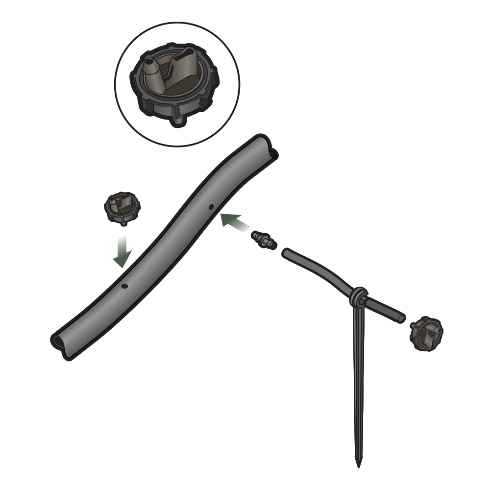 - Raised barbed outlet prevents water runoff along the drip lateral