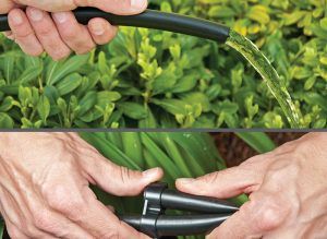 In cases where the faucet is not located adjacent to the garden or the area where the adjustable micro sprayers will be installed, you can extend the reach using an additional length of ½” drip tubing. Simply choose the appropriate model: B35 for a 50′ length or B36 for a 100′ length, and connect it from the faucet using a garden hose.