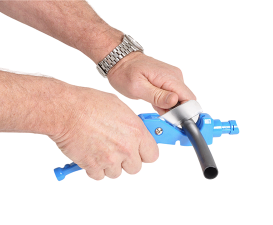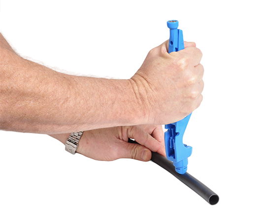 Lightly squeeze handles together while rotating them up and down. As the tubing is cut, release pressure at the end of the cut.