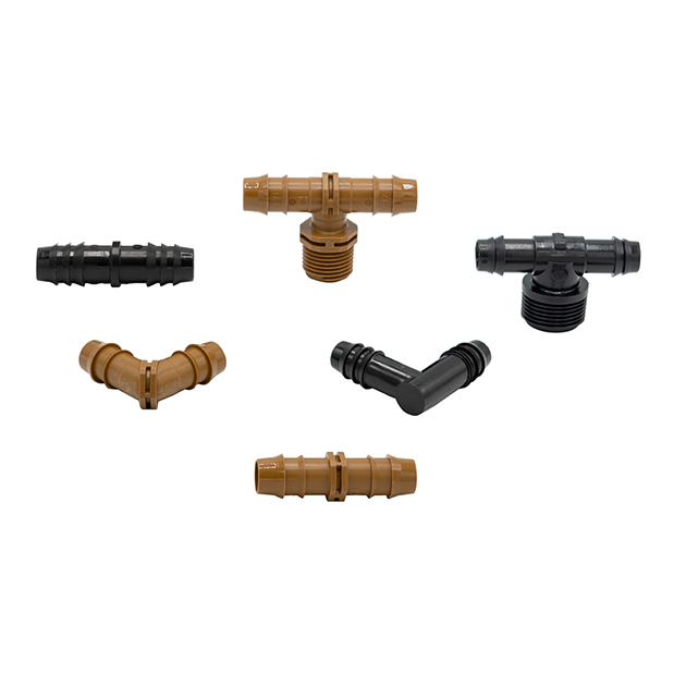 - Extra sharp barbed design for secure and easy installation of 16 mm and 17 mm drip tubing, emitter tubing and brown PC drip line