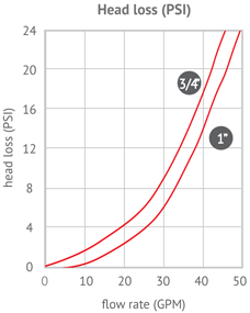 - Flow rates: 3/4" & 1": up to 18 GPM (4 m3/h)