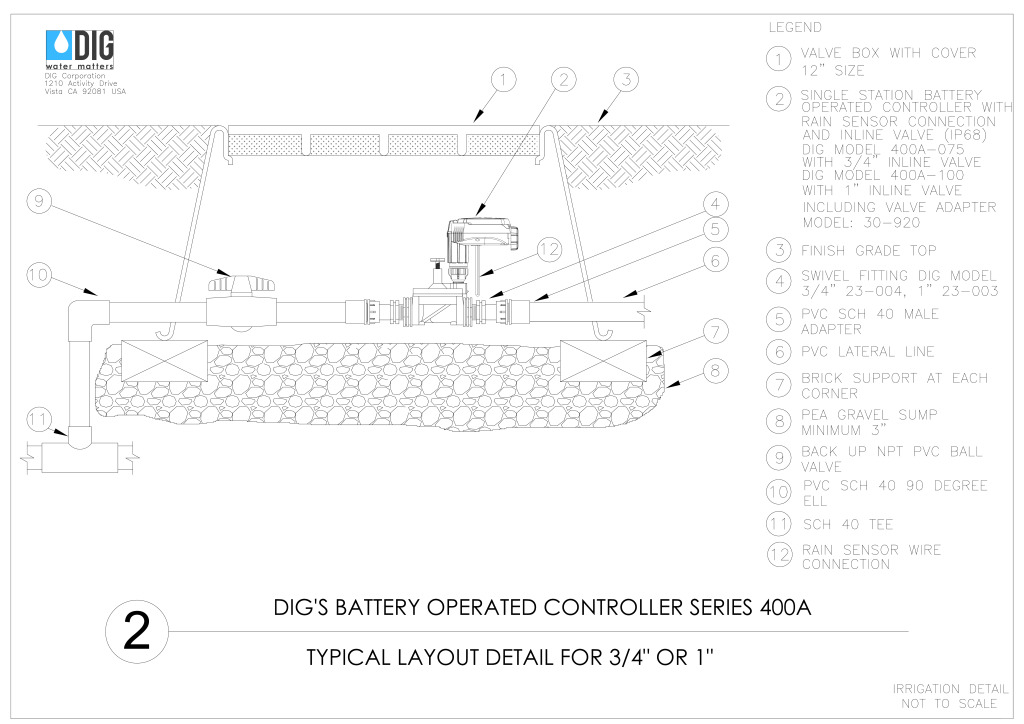 | 400A-075 | Single-Station, Battery Operated Controller with Two Wires, DC Latching Solenoid, and 3/4 in. Inline Valve |
