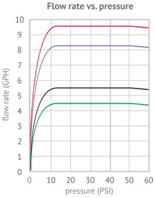 - Flow rates: 4.5, 5.5, 8.2, and 9.7 GPH (17, 20.8, 31 and 36.8 L/H)