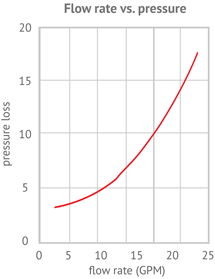 - Flow rates: .88 to 22 GPM (.2 to 5 m3/h)