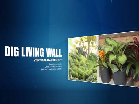 DIG’s Living Wall™ professional drip irrigation expansion accessories pack allows for an expansion of an existing Living Wall Vertical Garden with five individual pots. DIG Vertical Garden drip watering system for growing a variety of plants including perennials, herbs and succulents.The drip irrigation expansion pack uses pressure compensating drippers with a check valve to maximize efficient use of water for your pots.
