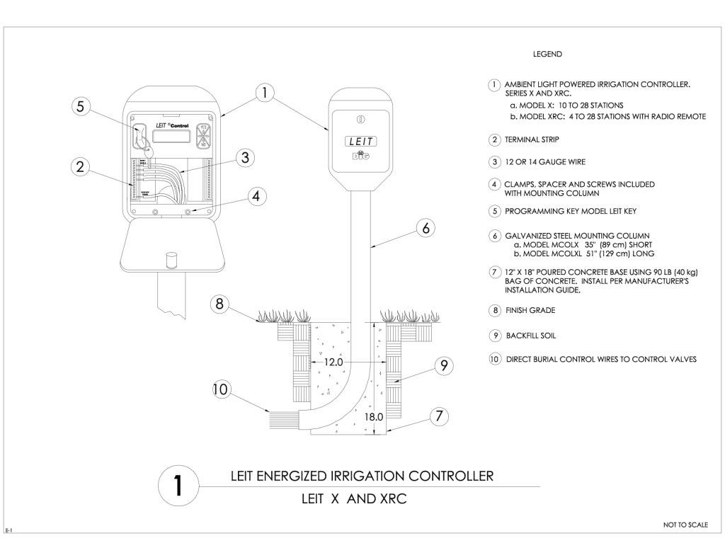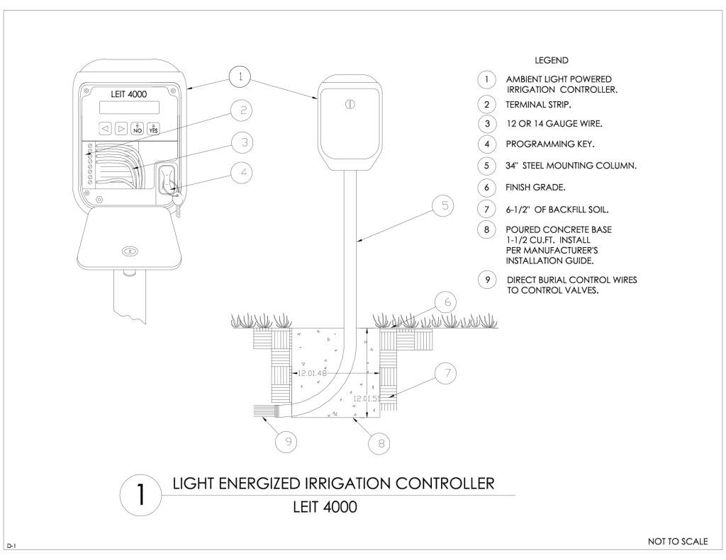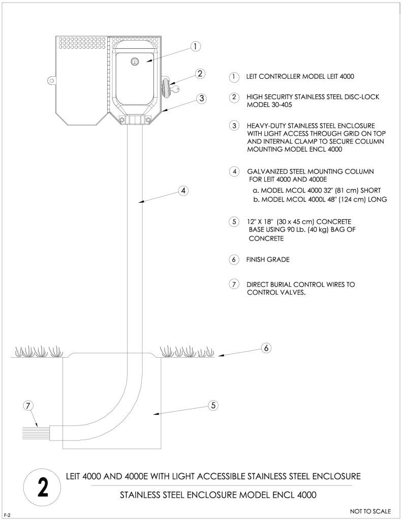 - Controller installation requires the following components: LEIT 4000 controller, LEIT Key, 1700S solenoid actuator, valve adapter, or 170S-XXX inline valve (3/4" to 2") and mounting column.